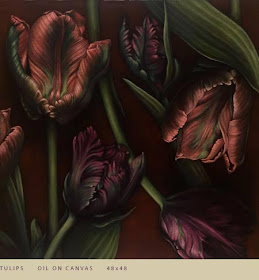 Larissa is influenced by everything in her life. Her brush creates a realistic impression as if it couldn't possibly be anything but a photo. She views her subject matter as architecture. She sees the subject and presents it in a way that is usually not seen from the naked eye. Her favorite subject to paint is the human figure from which she brings a reality to the paintings where attention to detail is as strong as attention to the character of the model. In her artwork, we are in the company of beautiful men and women, intimately poised and positioned. All her artwork is conceived from a sketch, which she later paints onto a large black canvas. Her delicate technique is with very thin layers of oil paint, while using the black background for shadowing. She captures every detail of her subject. For her it is all there, she just uncovers it.